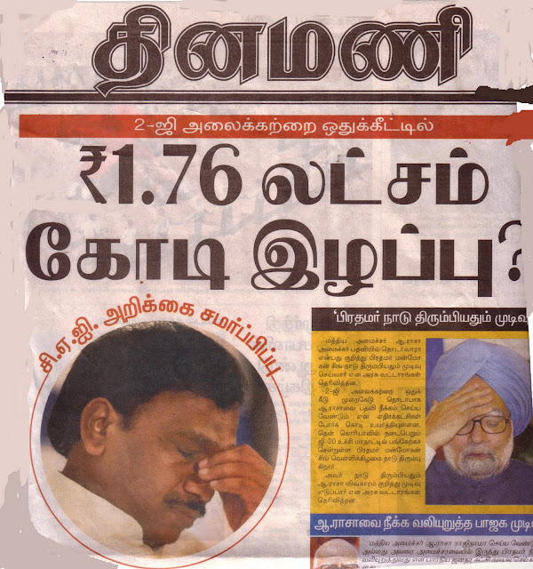 Excepting the NEW INDIAN EXPRESS daily in English and DINAMANI daily in Tamil (which also belongs to the New Indian Express Group), most of the other newspapers in Chennai have tried to either downplay the Himalayan corruption of Union Minister A. Raja or completely hide it from public view in one corner of the newspaper. The helpless common man in the street already hit by unprecedented inflation and beaten down and crushed by the ‘scientific corruption’ of the Italian firangi memsahib’s UPA II Government of India owes a deep debt of gratitude to these two newspapers for having reported the truth the whole truth and nothing but the truth relating to the 2G Spectrum mega-Fraud as brought out by the Comptroller and Auditor General of India. These 2 newspapers are playing their legitimate role as responsible mouth pieces of the public of India. All the other newspapers have sold their journalistic souls for a mess of pottage—I mean Government patronage—by way of Government advertisements.