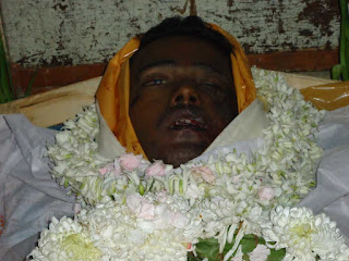 After intervention of Hindu Samhati activists, the deadbody was finally released at around 4pm, post mortem was done, but that too without a medical certificate. One police from Bangaon police station Mr. Ranjan was posted in the hospital for passing minute by minute report to Bangaon police station. He insisted to accompany the deadbody in the small truck but family members objected to that citing very small place inside the truck. Then he called In-Charge Bangaon police station and forcibly entered into the truck under his instructions.