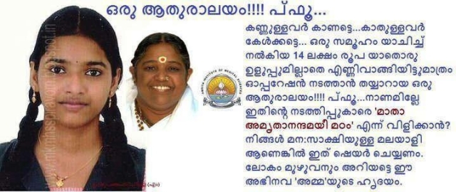 In the state of Kerala, were Hindus are marginalised in all fields, Presence of Amma and her institutions from School to Multi Speciality Hospitals is indeed a stumble block for the organised minority. Keralites need no introduction to hundreds of ‘Seva’ programs initiated by Amrithanandamayi Madom. Even still the Anti Hindus still try to tarnish the great institution and ‘Amma’ whenever they get a chance.